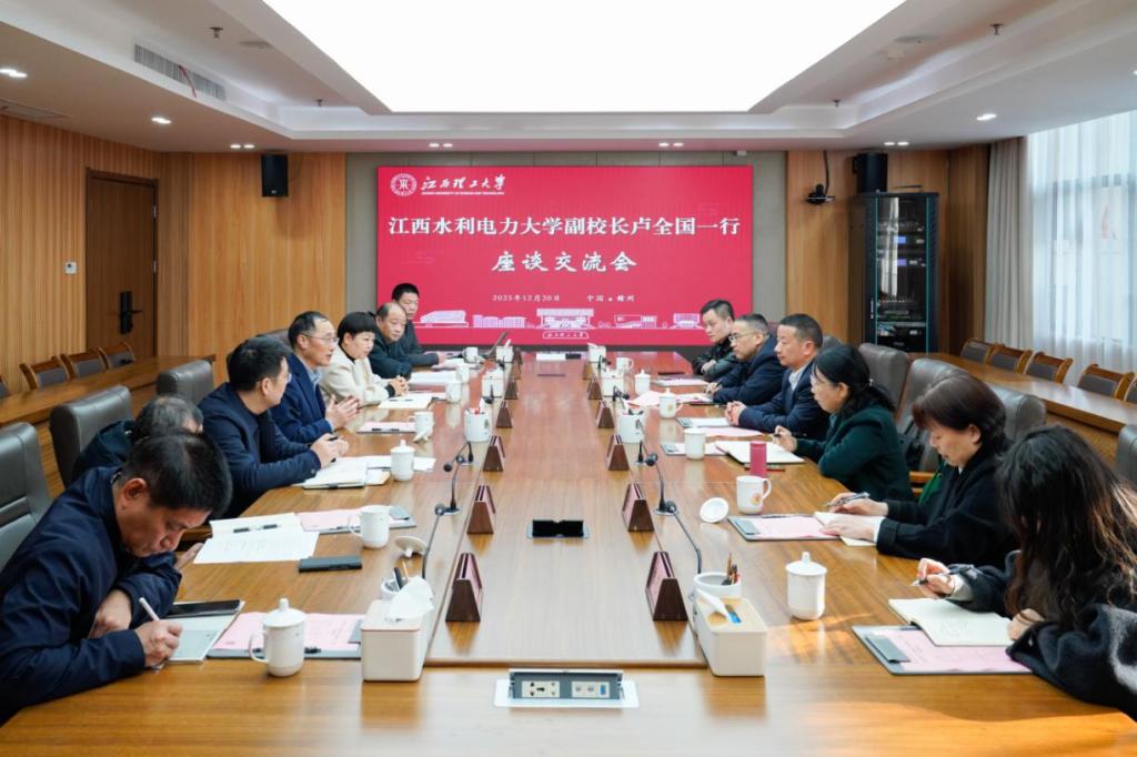 本网讯 12月30日,江西水利电力大学副校长卢全国一行来访。校党委书记刘祖文,校党委常委、副校长宁洁会见来宾并召开座谈交流会,相关部门负责人参加会议。