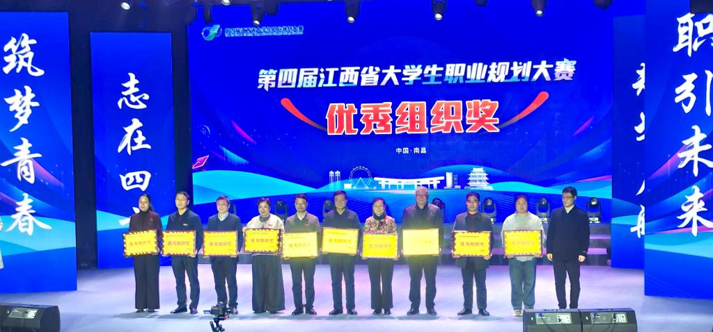 本网讯 近日,第四届江西省大学生职业规划大赛学生赛道决赛在南昌大学举办。其中,我校9名选手参加,最终斩获5金4银,金奖数并列高教组第一,金银奖数位列第一,同时获评优秀组织奖,成绩取得历史性突破。
