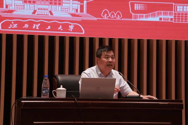 江西新闻客户端讯(张海燕 曾至炜)近日,江西理工大学为毕业学子举行了一场别开生面的离校教育。在江西理工大学三江校区志远会议中心1号厅,江西理工大学经济管理学院2024届全体毕业生齐聚一堂,江西省药学会医院药学专业委员会副主任委员徐小军在这里开展以“奔赴山海 不负热爱”为题的廉洁教育。通过鲜活生动的廉政教育为学子筑牢廉政之魂,用“三维六方”红色育人体系为学子扎牢理想信念的根。