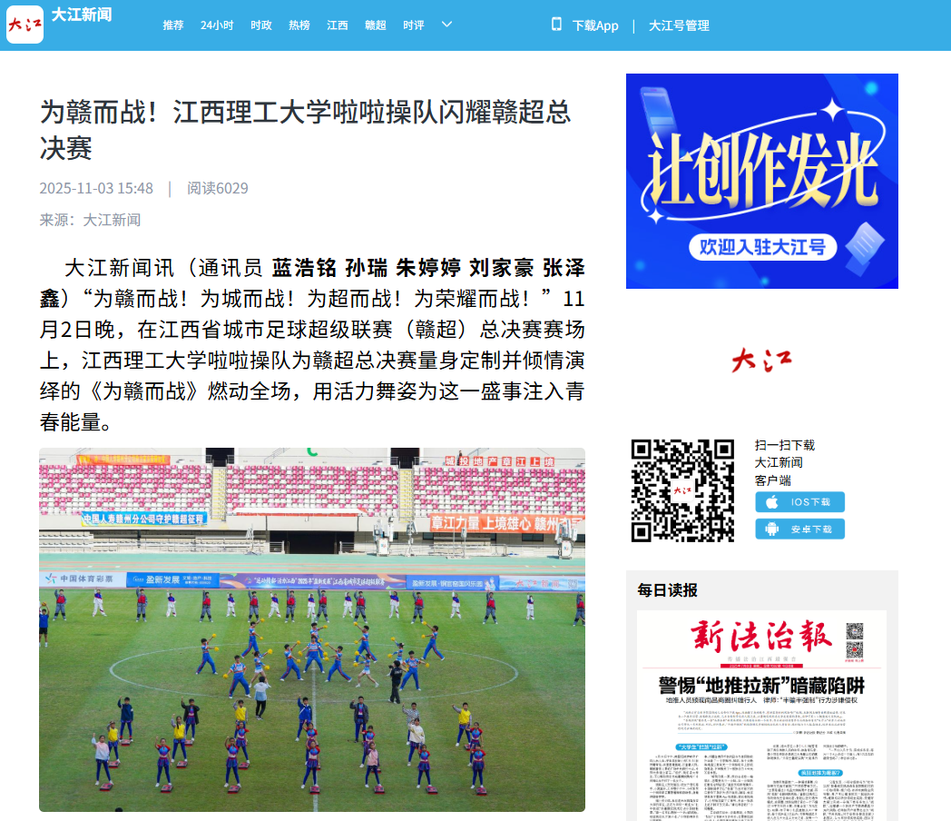 《大江新闻》:为赣而战!江西理工大学啦啦操队闪耀赣超总决赛