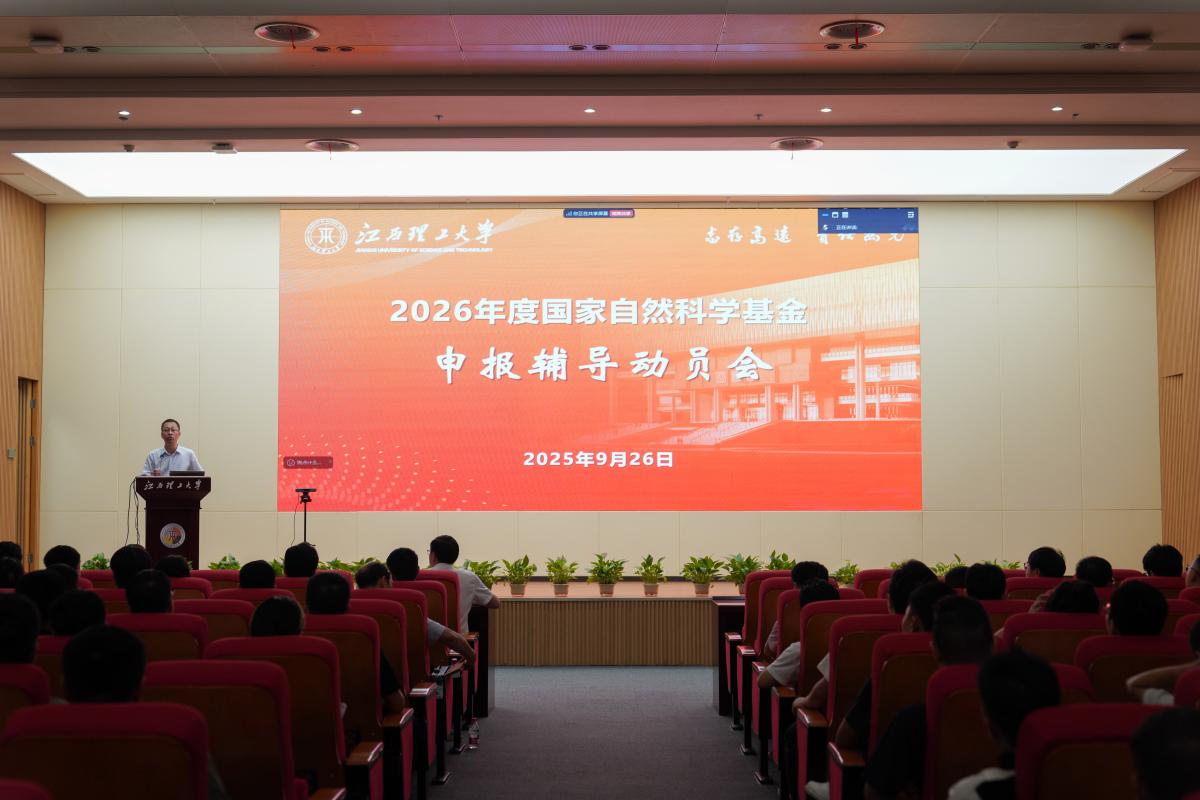 本网讯  9月26日,我校在三江校区志远楼2号会议中心召开2026年度国家自然科学基金申报动员大会。校党委常委、副校长熊志华,科技处处长吴彩斌,科技处副处长朱易春,各二级学院科研副院长、科研秘书、近三年新引进博士、以及申报2026年度国家自然科学基金的相关老师200余人参加会议。会议通报了学校2025年获批基金情况,部署了2026年基金申报工作。会议由朱易春主持。