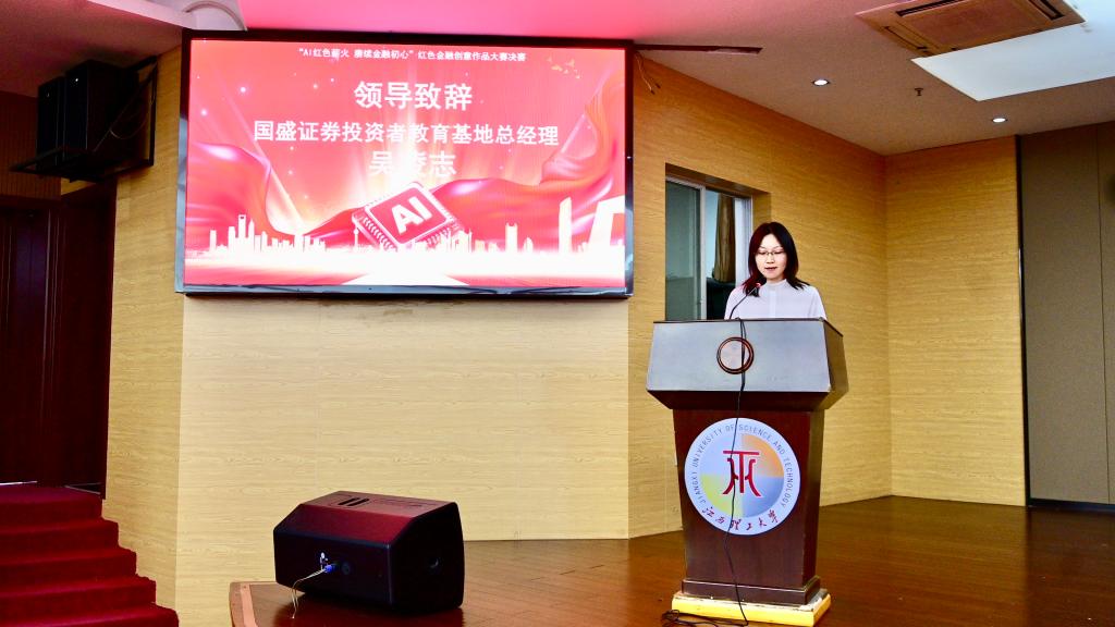本网讯  10月25日,在中国证券监督管理委员会江西监管局、赣州市人民政府办公室指导下,国盛证券联合江西省证券期货业协会、江西理工大学经济管理学院开展的“AI红色薪火·赓续金融初心”红色金融创意作品大赛决赛于红旗校区图书馆赵氟隆学术报告厅举行。赣州市政府办公室副主任朱雪林,国盛证券赣州分公司负责人卢毓明,国盛证券投资者教育基地总经理吴凌志等嘉宾出席决赛。经济管理学院党委书记曾国华、校学工部副部长孟冲、经济管理学院党委副书记吴媛及赣州市政府办、国盛证券、赣州市金融研究院的相关领导与教师代表共同参与活动。