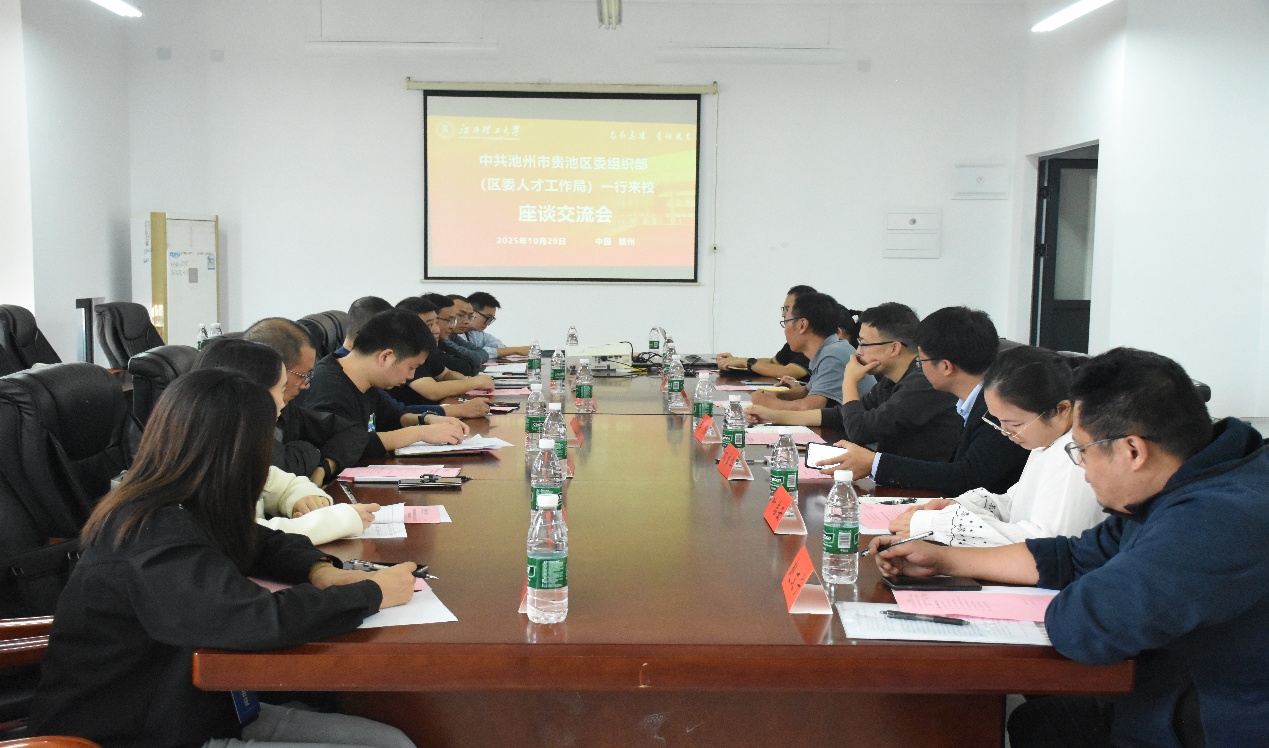 吴新肯定了我校办学实力和人才培养质量,并介绍了贵池区在产业发展、人才引进政策等方面情况,表达了与江西理工大学深化合作的强烈意愿,希望能吸引更多优秀人才到贵池区创新创业,为区域经济社会发展注入新活力。