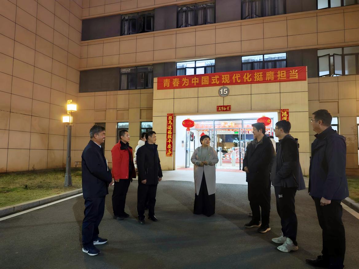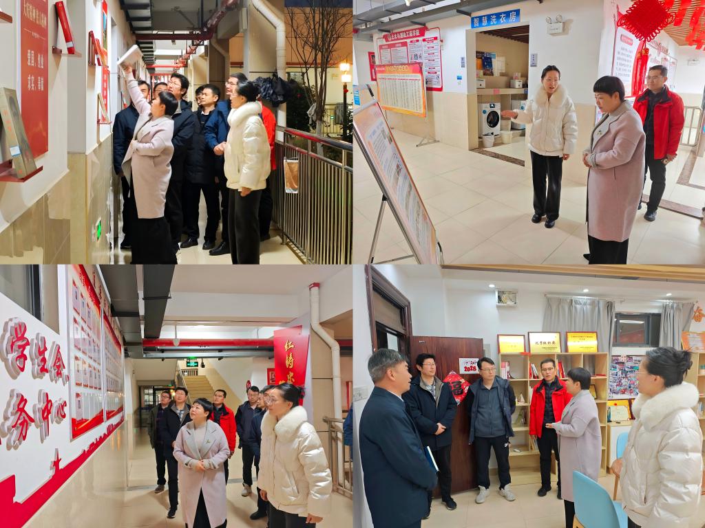 本网讯  1月4日晚,校党委常委、副校长宁洁一行深入土木与测绘工程学院15栋“一站式”学生社区,聚焦社区育人阵地建设、学生管理服务优化、思政教育融入日常等开展实地调研走访,掌握“一站式”学生社区建设成效,为后续育人工作提质增效精准把脉。党委学生工作部部长刘传立、土木与测绘工程学院党委书记贾群燕、正茂园各学生社区所属学院党委副书记及辅导员代表陪同调研。