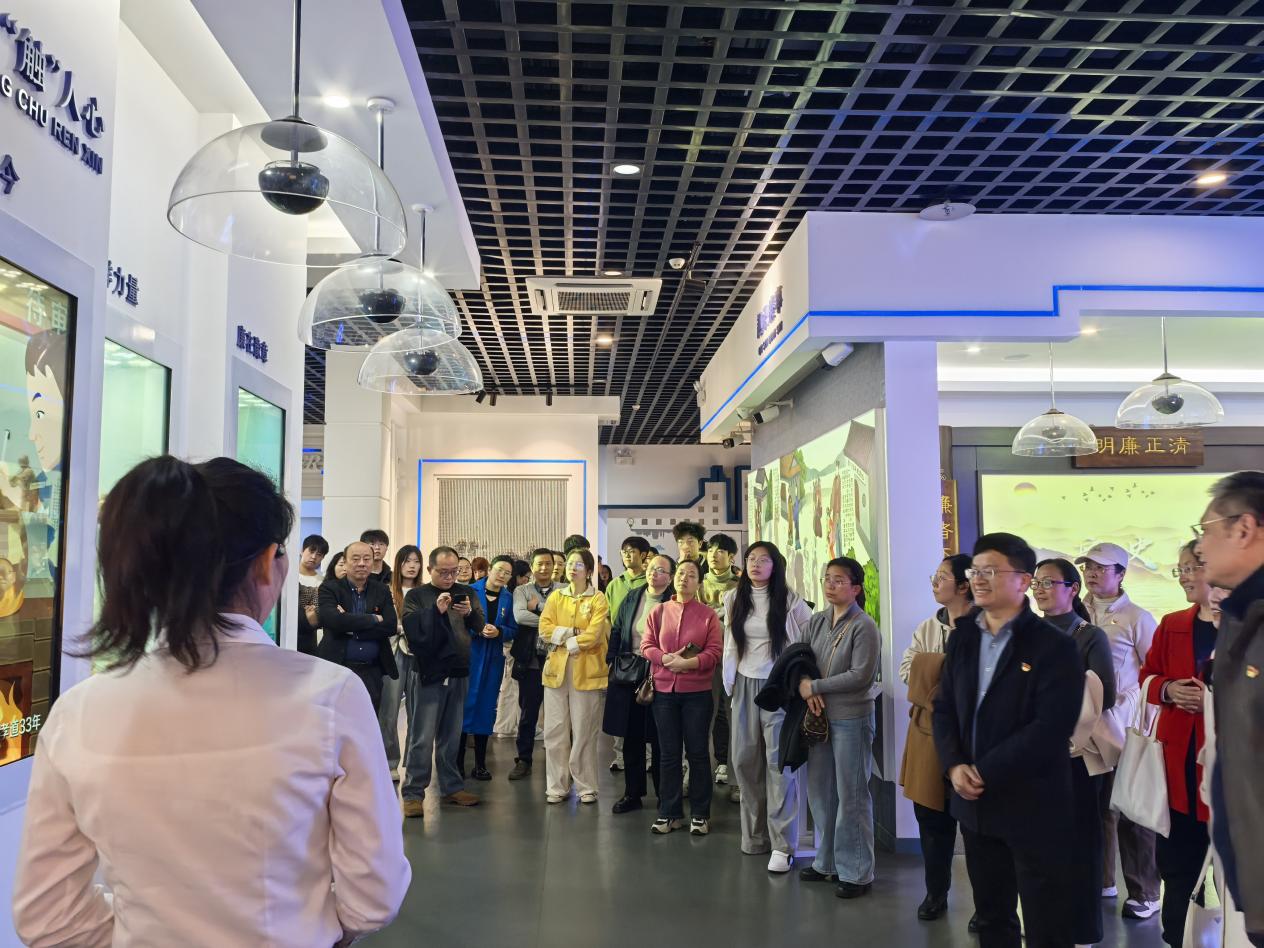 在讲解员引导下,全体人员依次参观各主题展区,接受沉浸式廉洁文化教育。展馆一层以 “廉脉传承” 为核心,设有说文解 “廉”、先贤廉范、姓氏家训等板块。党员们驻足历史文献与图文展板前,认真学习 “廉” 字起源与文化内涵,品读古代清官廉吏治政修身故事;在南昌本土先贤勤廉事迹展区,大家深入了解海瑞、汤显祖及近代革命先辈清廉操守,在历史对照中感悟中华优秀廉洁文化的精神传承。