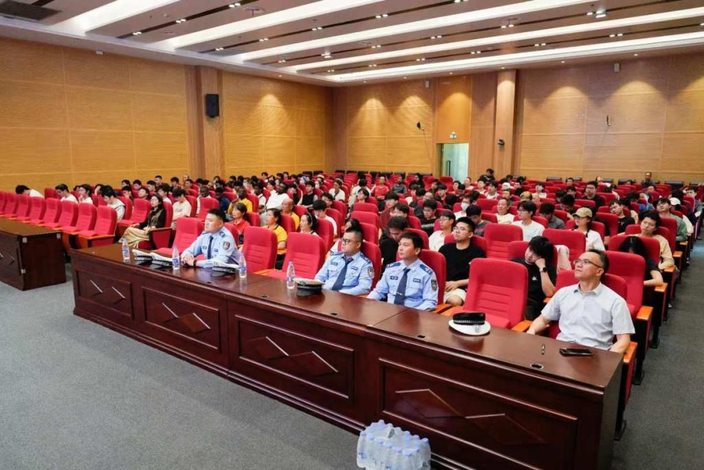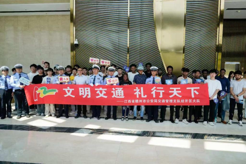 本网讯 4月28日上午,我校联合市交警部门在志远会议中心2号会议厅开展“知危险·会避险”春季交通安全进校园活动。活动旨在强化中外学生交通安全意识、普及交规知识、传授避险技能,赣州市公安局经开分局交通管理三江中队中队长刘新春、指导员黄根成及民警代表,学校保卫处、学工部、国际教育学院等部门领导、老师与中外学生代表共同参加,活动由校党委保卫部部长陈龙泉主持。