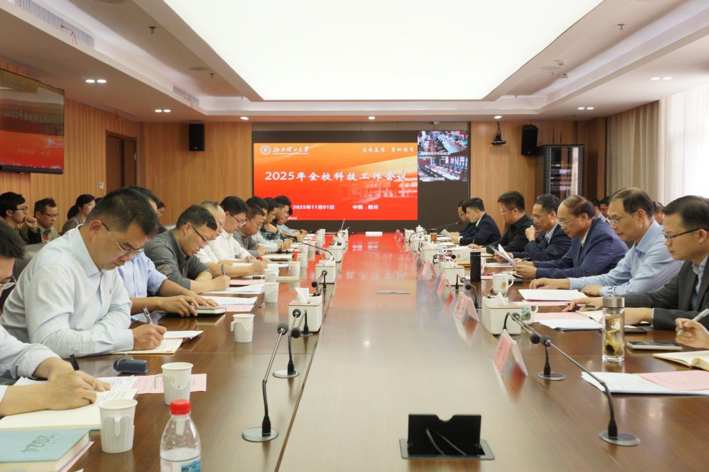 本网讯 11月1日,为贯彻落实二十届四中全会精神,推进教育科技人才一体发展,我校在三江校区(东园)濂溪楼三楼2号会议室召开2025年全校科技工作会议。在家校领导、赣南实验室主要负责人,各学院院长、科研副院长,实体化运行的国家级、省级平台负责人,科技处、社科处、技转中心、大学科技园等职能部门负责人参加会议。会议由副校长汪航主持。