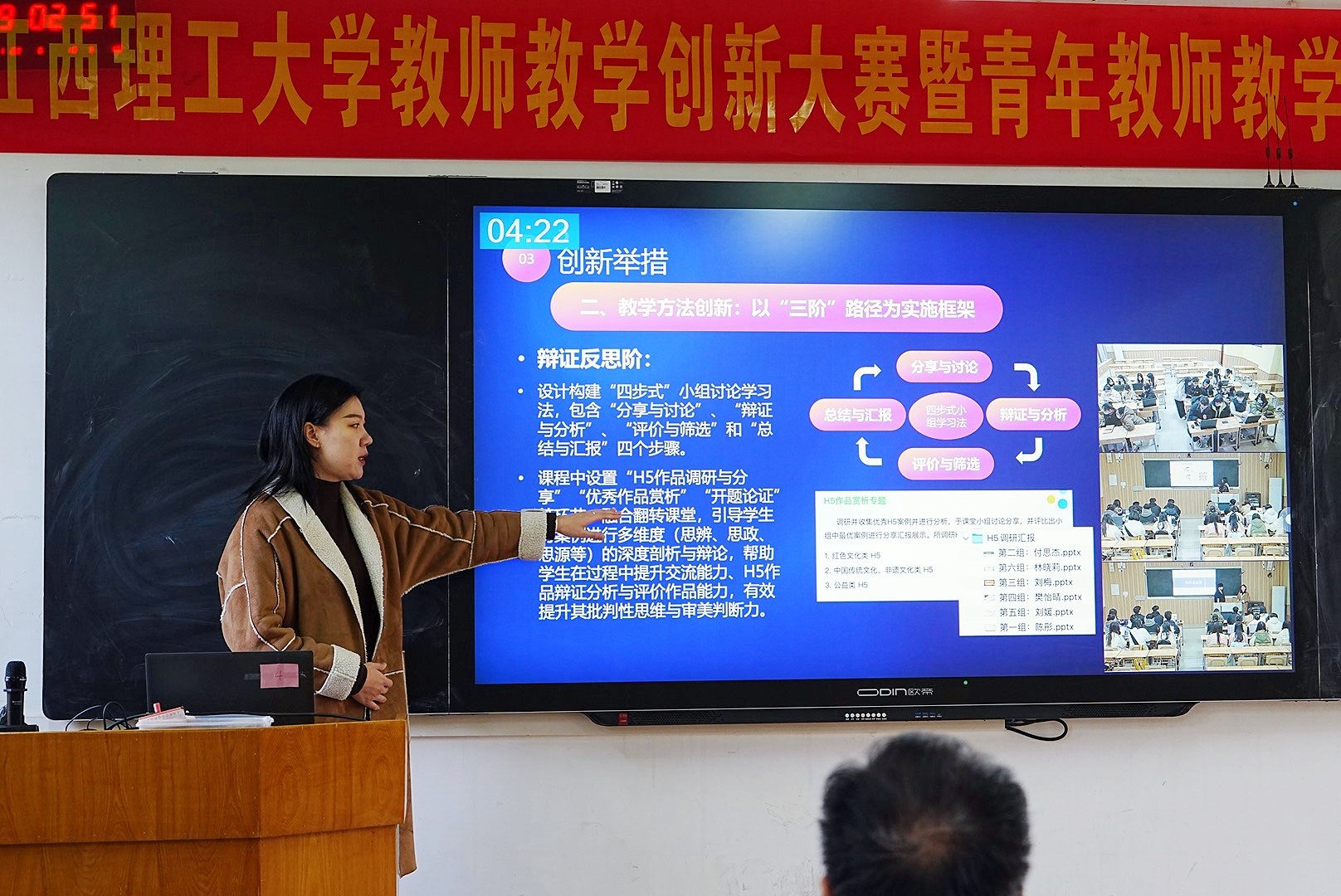 马克思主义学院教师朱贤凌表示,参赛能重新审视和优化个人教学,在比赛中通过不断打磨形成的创新方案和前沿理念,扎实地带回到每一堂课里,真正做到以赛促教。能源与机械工程学院教师陈敏分享道,传统教学中学生问题往往在下一教学周期才被反馈,导致响应滞后。而在课堂中推行“现场点对点指导”,实现问题即时回应,可大大提升教学调整的精准性。