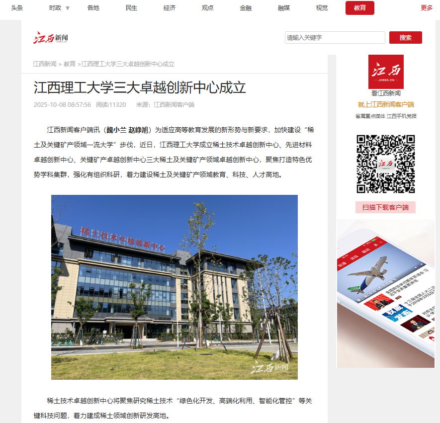 江西新闻客户端讯(魏小兰 赵峥旭)为适应高等教育发展的新形势与新要求,加快建设“稀土及关键矿产领域一流大学”步伐,近日,江西理工大学成立稀土技术卓越创新中心、先进材料卓越创新中心、关键矿产卓越创新中心三大稀土及关键矿产领域卓越创新中心,聚焦打造特色优势学科集群,强化有组织科研,着力建设稀土及关键矿产领域教育、科技、人才高地。