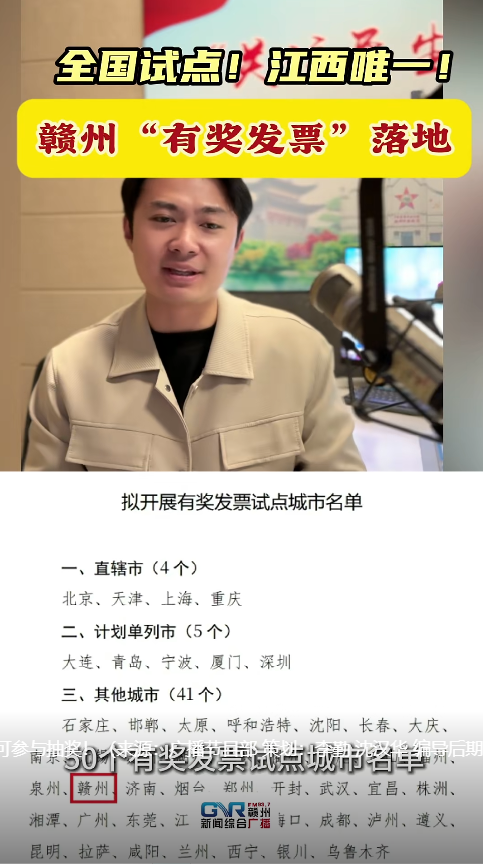 赣州入选全国有奖发票试点城市,消费可参与抽奖!