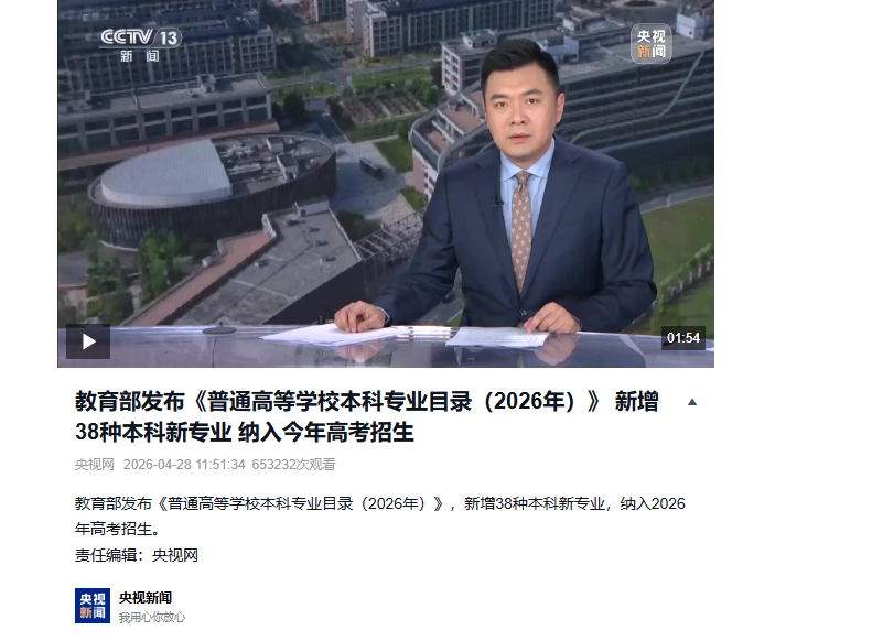 央视新闻在4月28日午间的《新闻直播间》栏目中重点采访了我校学术副校长、稀土学院院长李超忠并深度解读了新专业。