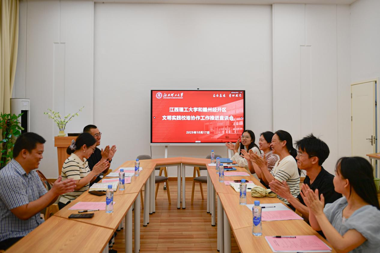 本网讯  10月17日,赣州经开区党群工作部副部长杨瑾一行来访,并于我校三实楼心理咨询中心会议室召开文明实践校地协作工作推进座谈会。校党委宣传部副部长钟峻燕、心理健康教育中心主任郭修凤出席会议,赣州经开区相关工作人员及我校心理健康教育中心教师参加座谈。
