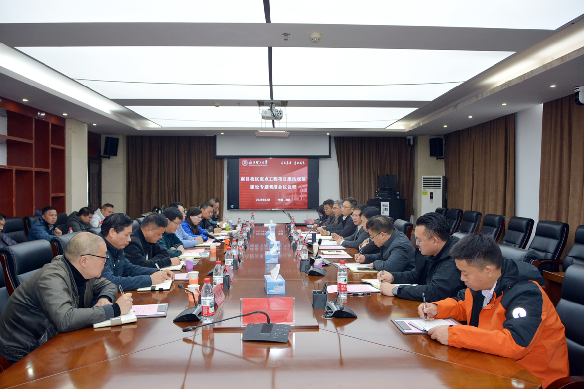 本网讯 12月16日,校党委常委、纪委书记、监察专员刘飞在南昌校区主持召开重点工程项目廉洁规范建设专题调度会。南昌校区管委会分管日常工作的副主任兼党委副书记潘春荣、南昌校区管委会副主任许祖华、校纪委监督检查室主任叶兴鹏及南昌校区研究生公寓项目和十号学生公寓项目各参建方代表参加会议。